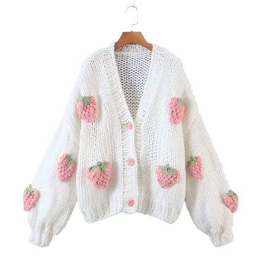 Mirriam - V-halset, brodert jordbærcardigan