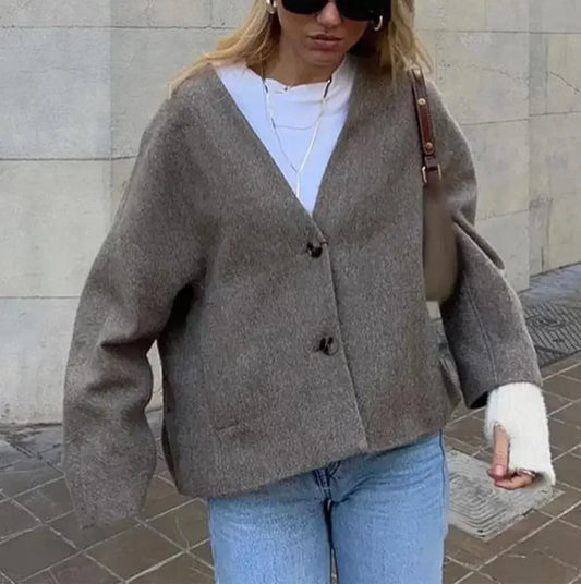 Bea - V-hals langermet ullblanding vinterfrakk for kvinner